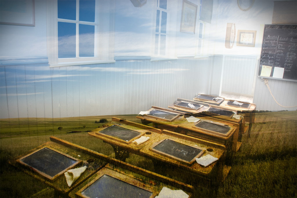 Big screen projections for Theatre Calgary’s production of W.O. Mitchell’s Jake and the Kid. One principle guiding the designs was to have the ubiquitous prairie landscape be a part of each panel.